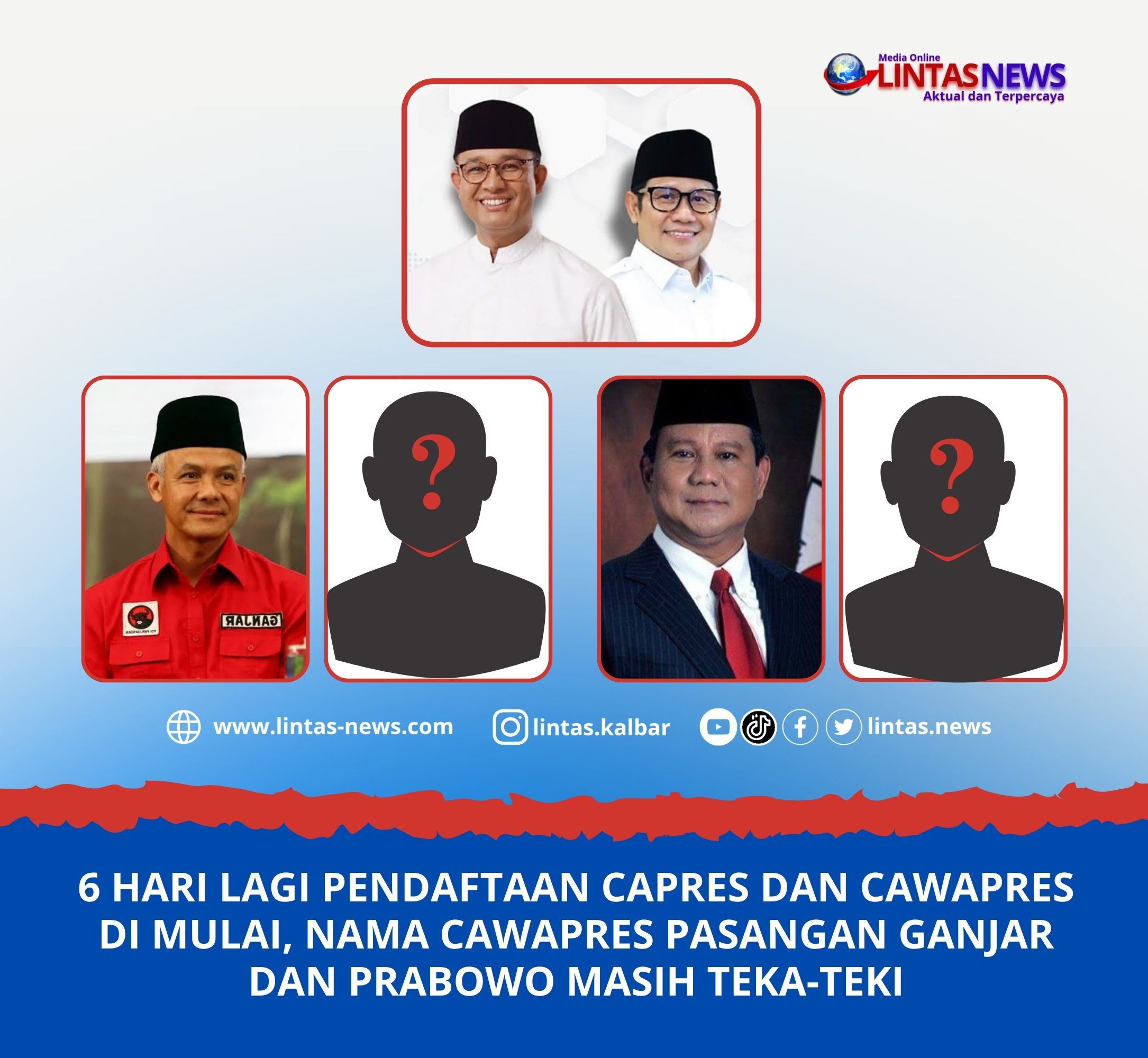 LINTAS-NEWS.COM, JAKARTA – Berdasarkan PKPU Nomor 3 Tahun 2022 Tentang Tahapan dan Jadwal Penyelenggaraan Pemilihan Umum Tahun 2024, disebutkan bahwa pendaftaran capres dan cawapres dimulai pada hari Kamis, 19 Oktober 2023.