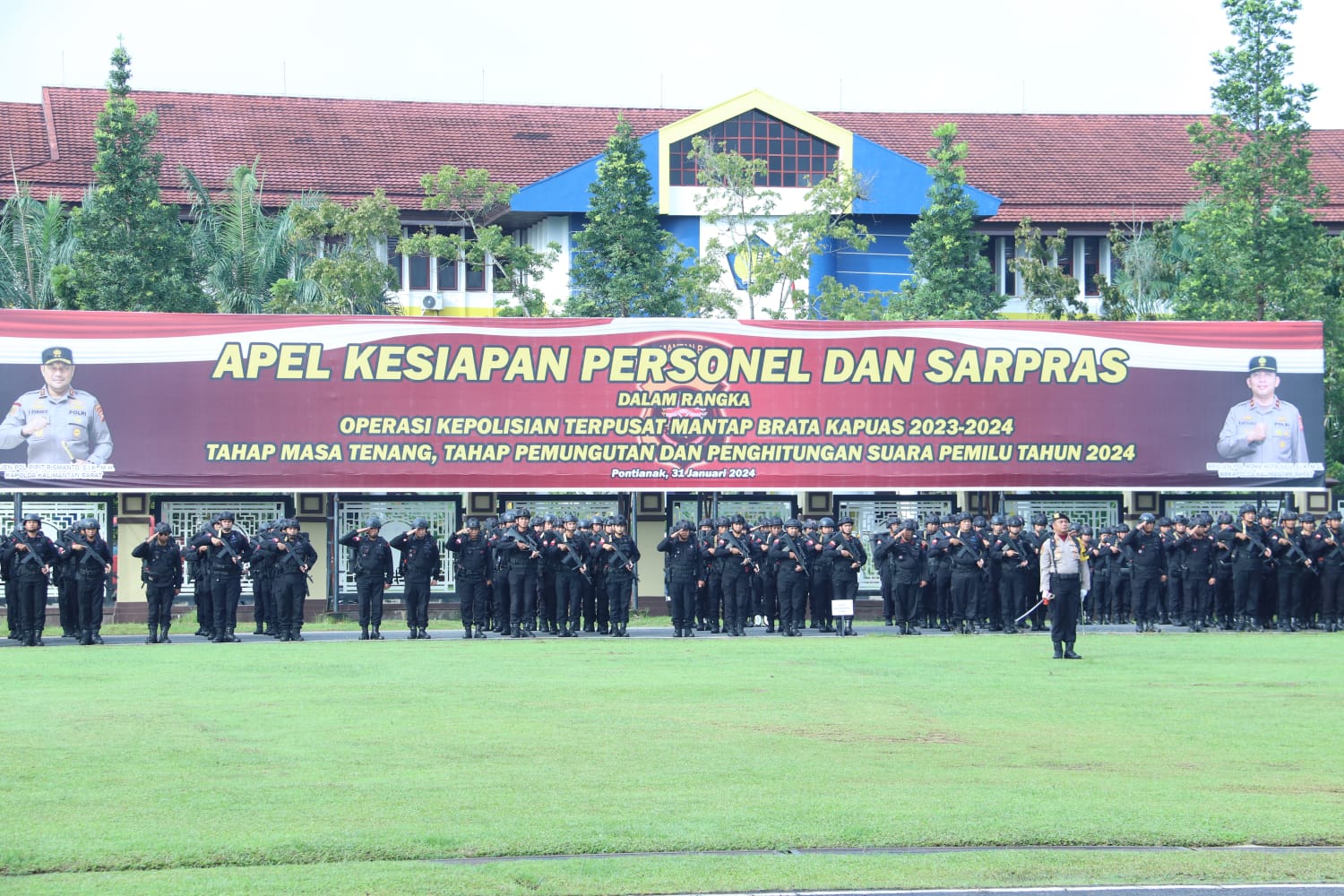 LINTAS NEWS, KALBAR – Kapolda Kalbar dalam apel pengecekan pasukan serpas dilapangan Apel Jananuraga menyampaikan bahwa Polda Kalbar telah siap untuk mengamankan gelaran pesta demokrasi dalam pemilu 2024 ini dan siap menurunkan 4.122 personil untuk menjaga dan mengamankan 17.626 TPS di seluruh Kabupaten provinsi Kalimantan Barat. Kita akan bekerjasama dengan TNI serta unsur stekholder terkait lainnya, Kamis (01/02/2024)