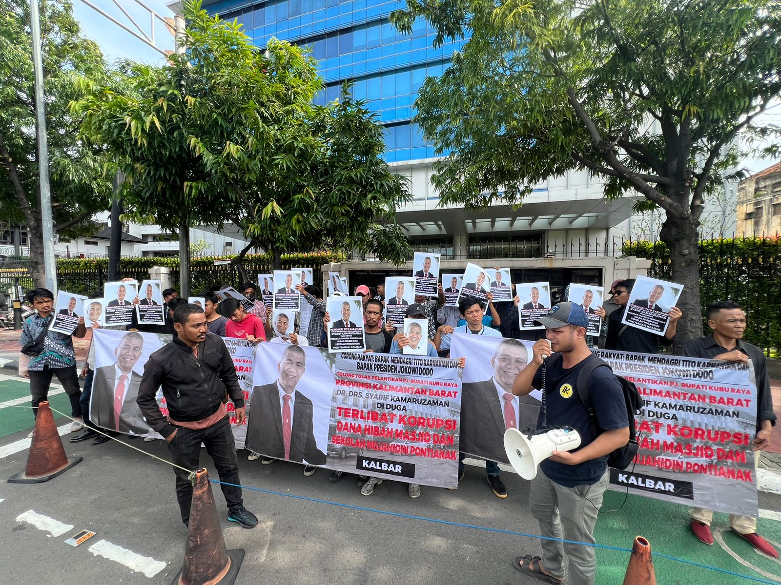 “Kami datang ke kantor Kementerian Dalam Negeri untuk meminta Pak Tito Karnavian dan juga Presiden Joko Widodo agar tak melantik yang namanya Syarif Kamaruzaman,” ujar Koordinator Corong Rakyat, Muhammad Reynal saat berunjuk rasa di depan kantor Kementerian Dalam Negeri, Jakarta, Jumat (16/2/2024).