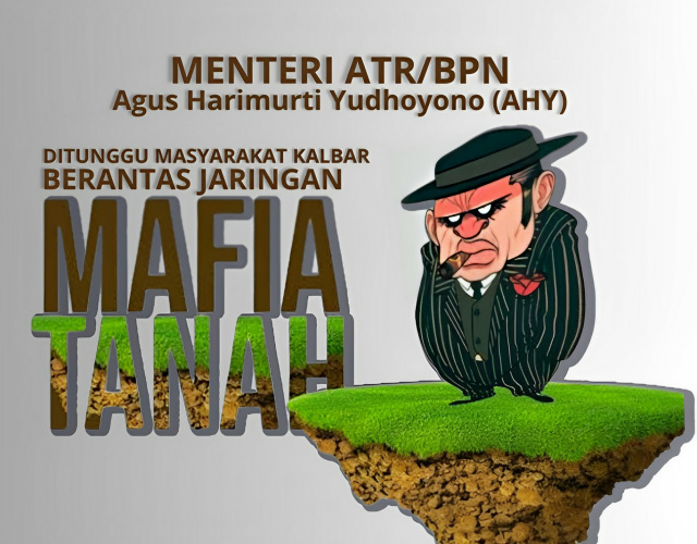 Masyarakat Kalbar sangat gembira mendengar informasi bahwa Menteri Agraria dan Tata Ruang (ATR) Agus Harimurti Yudhoyono (AHY) menyatakan tidak ada celah bagi mafia tanah, di beberapa provinsi telah di sikat beliau. Masyarakat sudah menunggu kapan di Kalbar dinyatakan perang terhadap mafia tanah. Semoga bisa dilakukan hal yang sama dengan berbagai daerah lain. Hanya saja biasanya tidak berdaya ketika berhadapan dengan koorporasi.