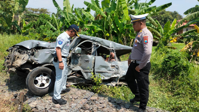 lintas yang melibatkan Kereta Api (KA) Pandalungan dengan sebuah minibus di Kabupaten Pasuruan, Jawa Timur, pada Selasa (07/05/2024).