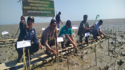 lintasnews, Sambas – Dalam rangka mendukung program pemeliharaan lingkungan hidup serta menjaga ekosistem pesisir, Koramil 08/Paloh ikut berpartisipasi dalam kegiatan penanaman pohon mangrove yang dilaksanakan di wilayah pesisir binaan, di Kec. Paloh.