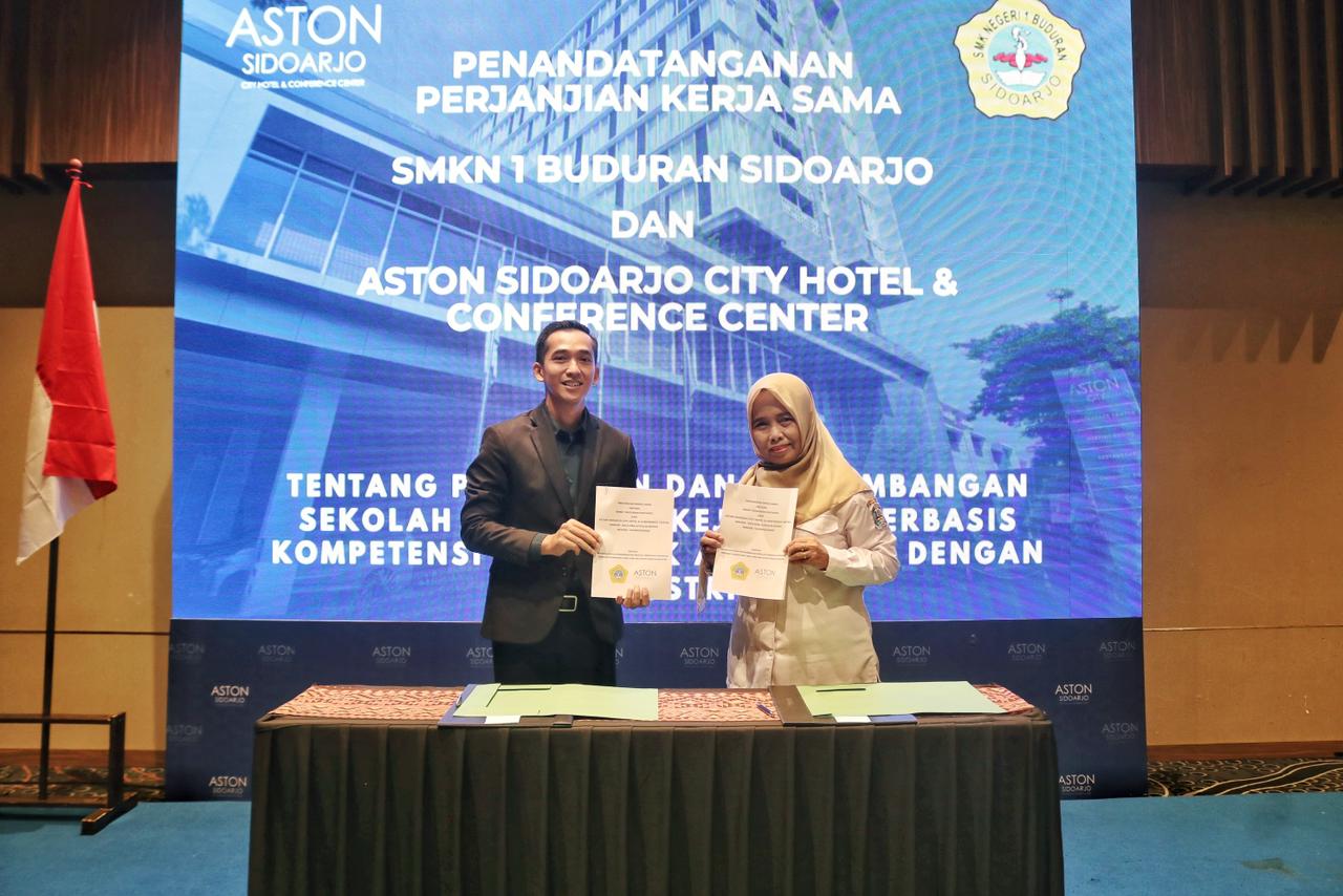 lintasnews, Sidoarjo – Aston Sidoarjo resmi menandatangani perjanjian kerja sama jangka panjang dengan SMK Negeri 1 Buduran sebagai komitmen untuk mendukung penguatan kompetensi siswa melalui program magang industri.