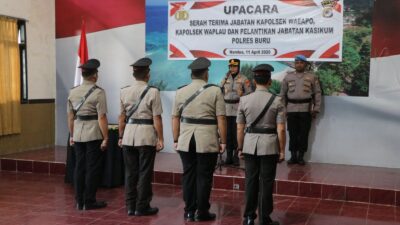 Dalam Upacara Tersebut Dilaksanakan Serah Terima Jabatan Kapolsek Waeapo Dan Kapolsek Waplau, Serta Pelantikan Jabatan Kasikum Polres Buru. Prosesi Berlangsung Tertib, Mulai Dari Pembacaan Keputusan Kapolda Maluku, Penyematan Tanda Jabatan, Pengambilan Sumpah Jabatan, Hingga Penandatanganan Berita Acara Dan Pakta Integritas.