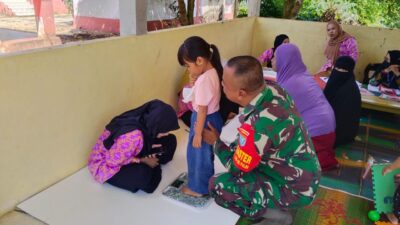 lintas-news, Sambas – Dalam rangka mendukung peningkatan kesehatan masyarakat di wilayah perbatasan, Babinsa Temajuk Koramil setempat melaksanakan pendampingan kegiatan Posyandu bersama tenaga kesehatan (nakes), yang digelar di Dusun Camar Wulan, Desa Termajuk, Kec. Paloh, Kab. Sambas, Senin (20/04/26).Kegiatan Posyandu ini merupakan program rutin yang bertujuan untuk memantau tumbuh kembang balita, kesehatan ibu hamil, serta memberikan pelayanan kesehatan dasar kepada masyarakat. Dalam pelaksanaannya, Babinsa turut membantu kelancaran kegiatan sekaligus memberikan motivasi kepada warga agar aktif mengikuti Posyandu.